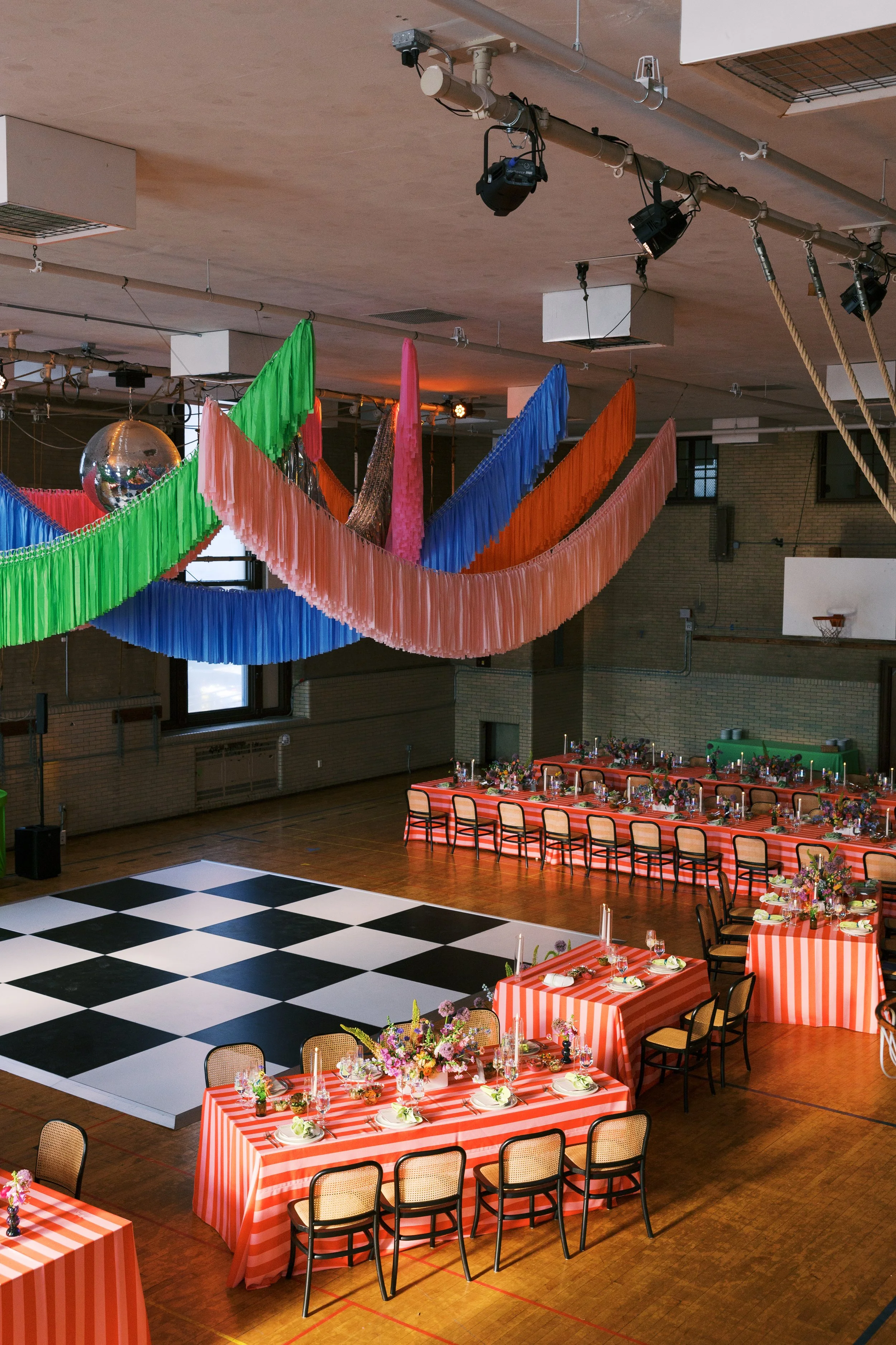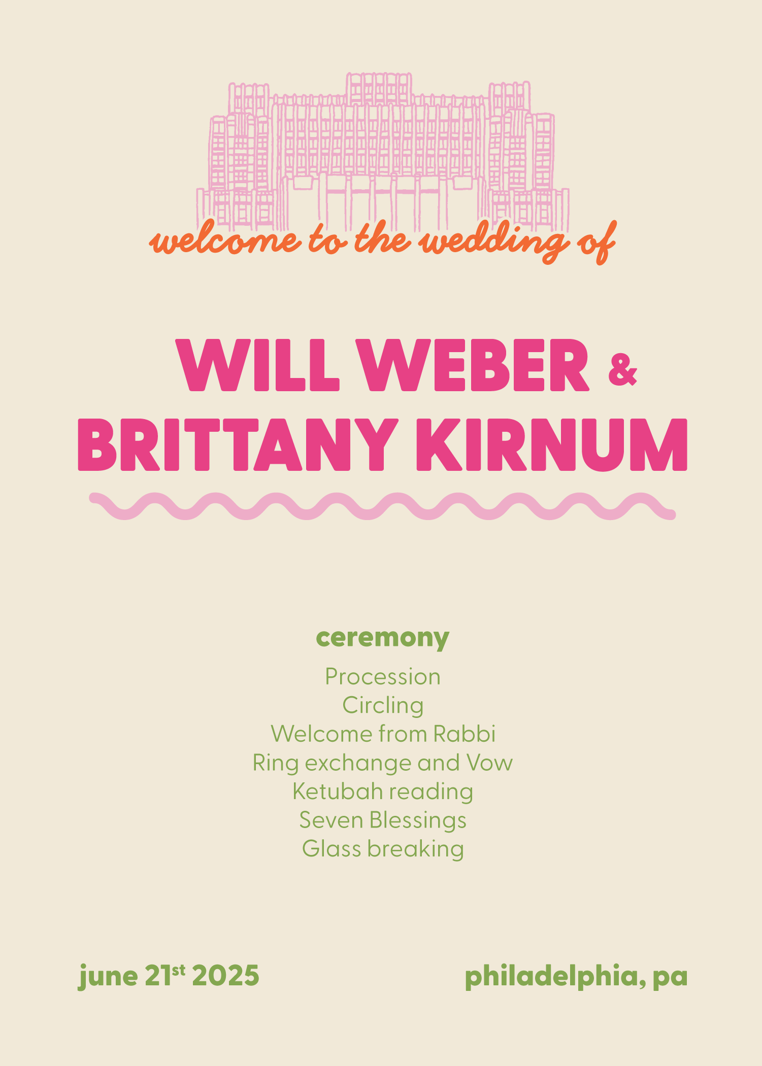For my own wedding, I created a cohesive visual identity. This included designing all printed materials—from save-the-dates and invitations to menus and matchbooks—using Adobe Illustrator, Photoshop, and Procreate. Beyond graphic design, I brought the vision to life through handmade decorative fringes and by styling bold, colorful tablescapes, meticulously selecting every detail from linens to glassware.